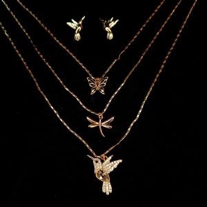 Dijes y aretes colibrí 3 dijes 14K-14