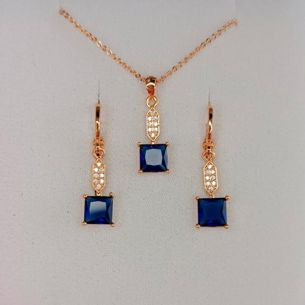 Dije y aretes cuadro azul con zirconias