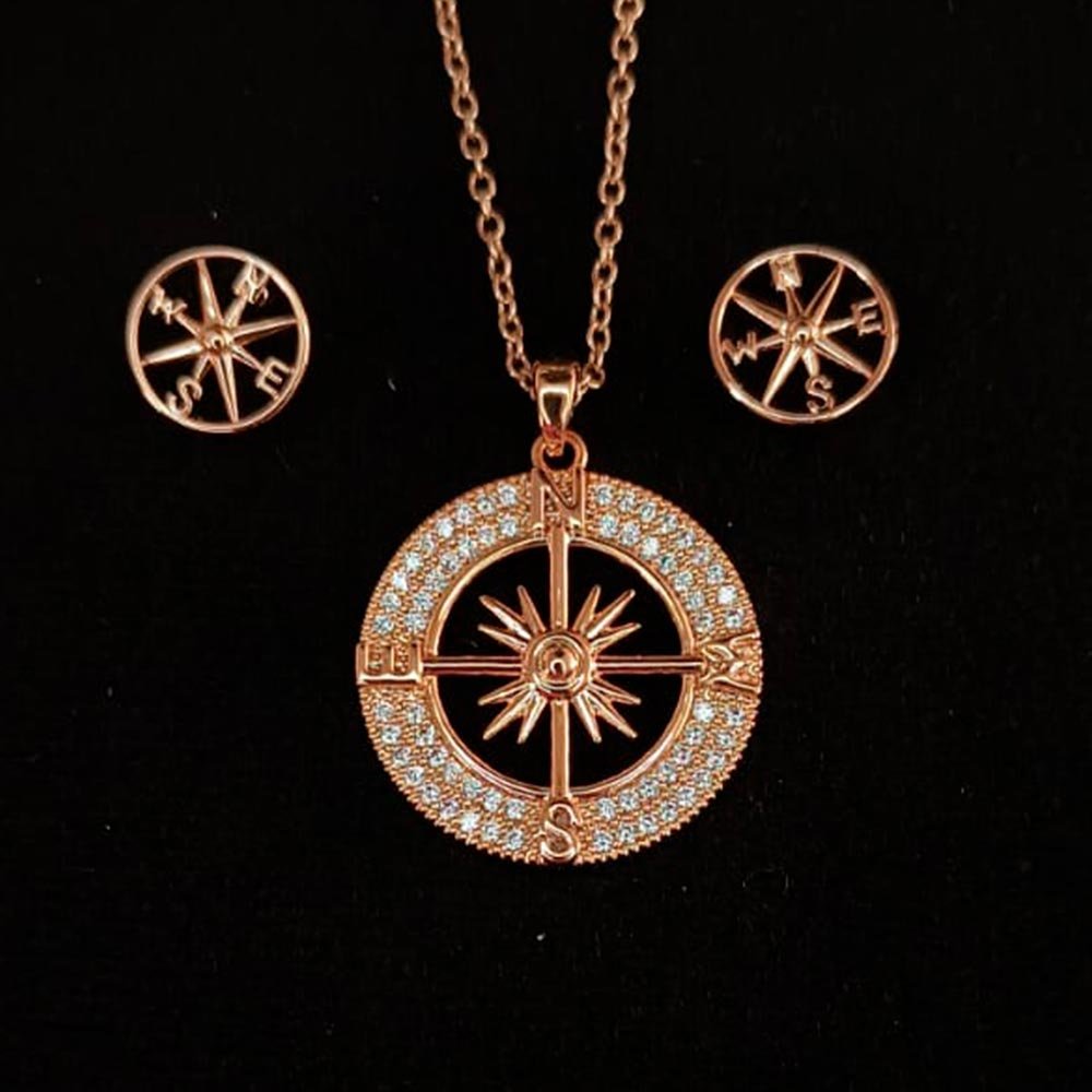 Dije y aretes rosa de los vientos con zirconia 14KL
